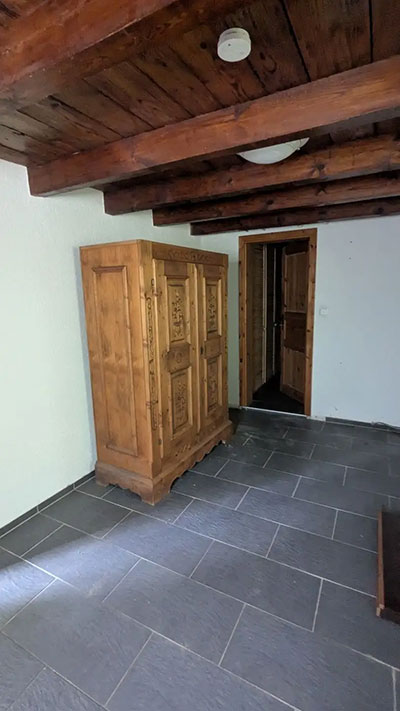 Infos: Dieses 2002 erbaute Ein-/ Zweifamilienhaus befindet sich in ruhiger Lage, jedoch auch in Nähe zum Ortskern.Im Erdgeschoss ist die Garage mit elektrisch angetriebenen Tor mit direktem Zugang zum Haus. In dieser Etage sind zwei Schlafzimmer mit Badezimmer, die auch als seperate Einliegerwohnung zu nutzen wären.Im darüberliegenden Geschoss befindet sich ein großes Wohn-/Esszimmer mit schönem Kachelofen und Zugang zu einer überdachten Terrasse und dem Garten.Die offene Wohnküche ist voll möbiliert. In dieser Etage liegen zwei weitere Schlafzimmer mit einem großen Badezimmer mit Badewanne und Dusche, ein Gäste WC sowie eine Speisekammer. Im Dachgeschoss ist ein offenes Studio vorhanden sowie zwei Schlafzimmer mit einem weiteren Badezimmer. Das Haus befindet sich in einem sehr gepflegten Zustand. Die Rolläden sind elektrisch.